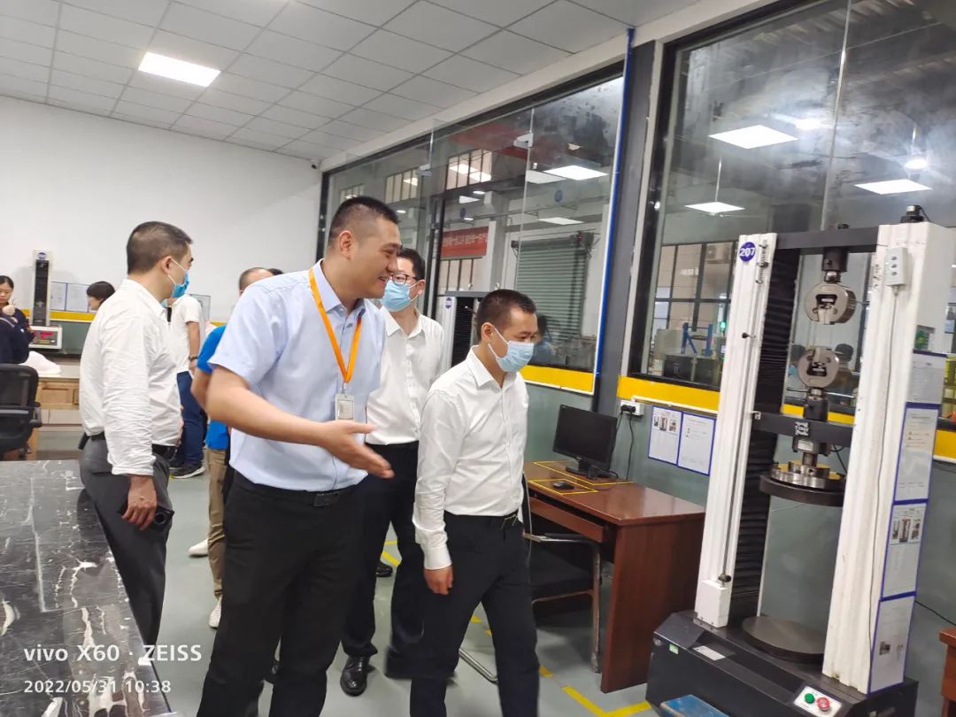 在(zài)檢測室,吳縣(xiàn)長參觀了材(cai)料的檢測設(she)備、彈簧的特(te)性⭐檢🧡測設備(bei)以及疲勞檢(jiǎn)測設備,同時(shi)鼓勵我們多(duo)做測試,積累(lei)數據,了解并(bing)掌握材料在(zai)制作和使用(yong)中的力學分(fèn)布情況,讓彈(dàn)簧的性能達(da)到極緻。
